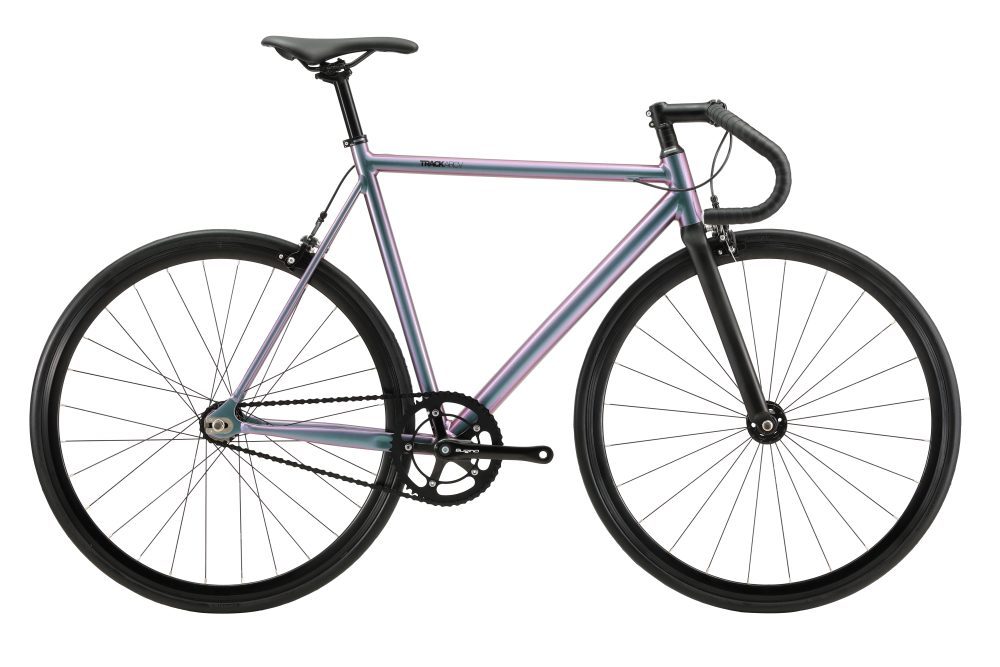 同じシングルスピードでも、前下がりのパシュートジオメトリーでより攻撃的なルックスの「トラックアーカイブ」。標準はフリーギアですが、別売りの固定ギアでピストバイクカスタムも可能。