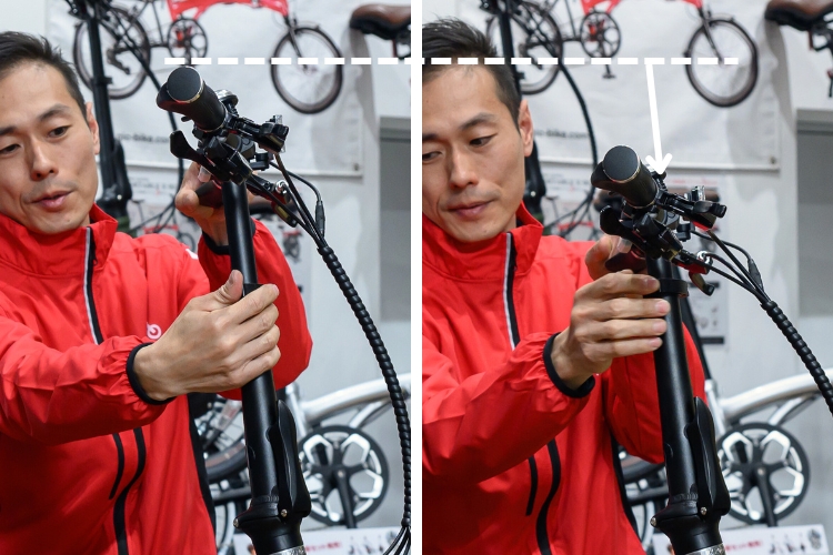 まさに人をダメにしちゃうほどストレスフリーな乗りやすさなんです。たとえばハンドルも、高さ調整が簡単にできちゃいますしね。