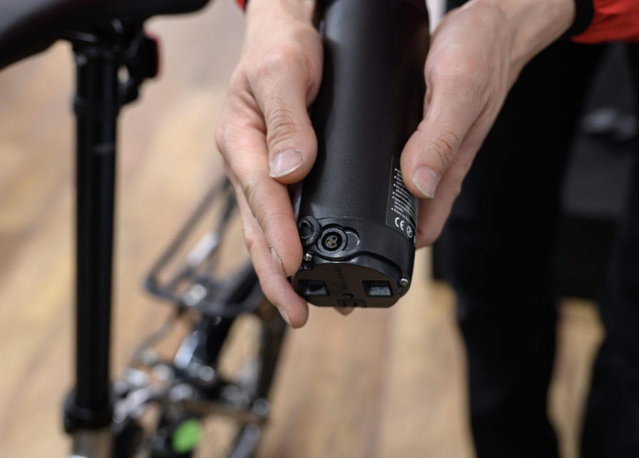 Lowモードで約38kmの距離を走れますが、バッテリー自体がコンパクトなので予備バッテリーを持っていってさらに距離を伸ばす、なんてことも可能です。