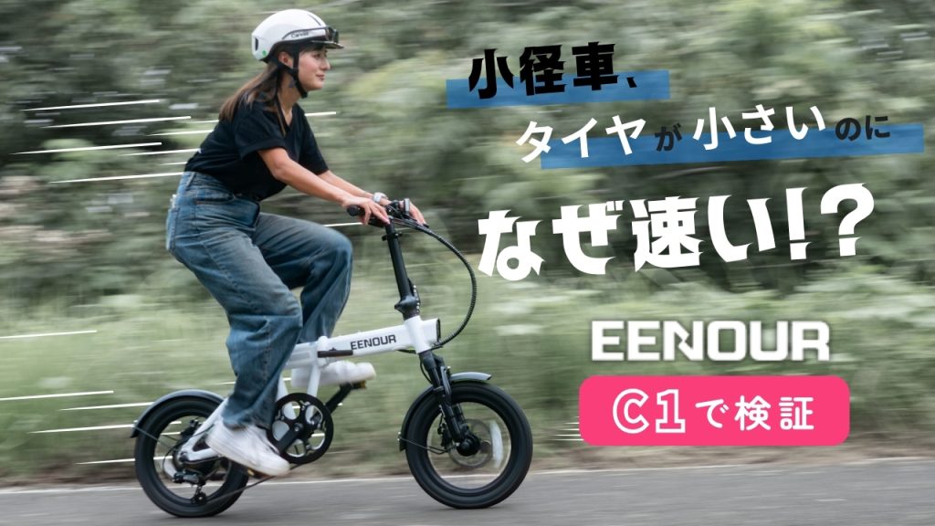 よく走るミニベロとして紹介するのは、EENOUR(イーノウ)から発売されたばかりのミニベロ「C1」。16インチという、ミニベロの中でも小さめのホイールサイズの自転車ですが、はたしてその走行性能のヒミツとは……?