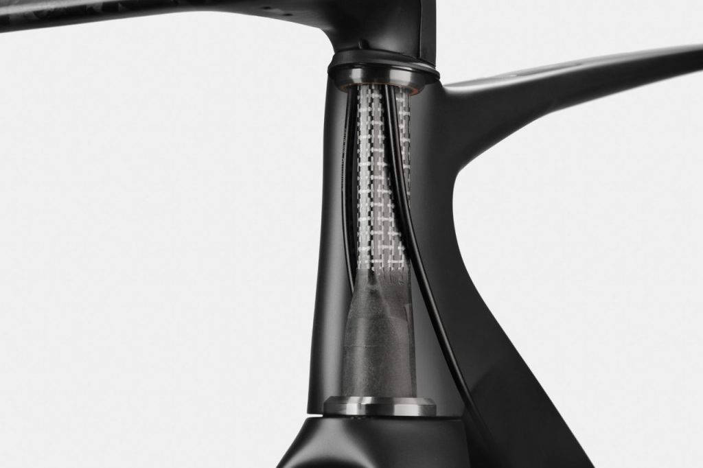 ヘッドチューブの前面投影面積をより少なくすることで、より大きなエアロダイナミクス効果をもたらします。ハンドル旋回の制限をなくしました。