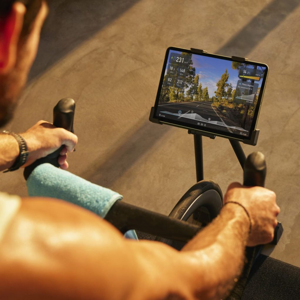 ダイナミックフォークマウントによりハンドルを回すだけでアプリ内のルートを切り替え可能。同じアプリを使用する友人とつながれば、室内にいながらより臨場感のあるグループライド体験も楽しむことができます。
