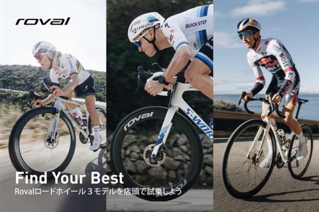 2025年、新たなラインアップでフルモデルチェンジしたRovalのロードホイールは、共通の使命「勝利」のために、正しいとされていたセオリーを根底から覆し、高いフロントに低いリアという革新的なリムハイトを採用。さらに、ライダーの求める性能により細分化した選択肢としてRoval Rapide Sprint CLXが加わりました。また、ARRIS社と共同開発したRovalコンポジットスポークを新たに採用しています。これらの最新ホイール3モデルをを全国の店舗で乗り比べ、あなたのライドに最適なホイールを探すことができます。店頭では、プロスタッフがあなたの走りに合わせたホイール選びをサポートします。